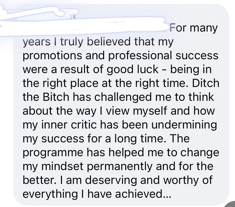 Self-doubt and Imposter Syndrome are issues that we see coming up daily for incredible women and it’s stopping them from being all they can be. And we aren’t happy about that! The world needs you to feel your most confident self so that you can have the life you deeply desire. This is exactly why we designed ALL of our amazing programmes, including this Ditch The Bitch programme.